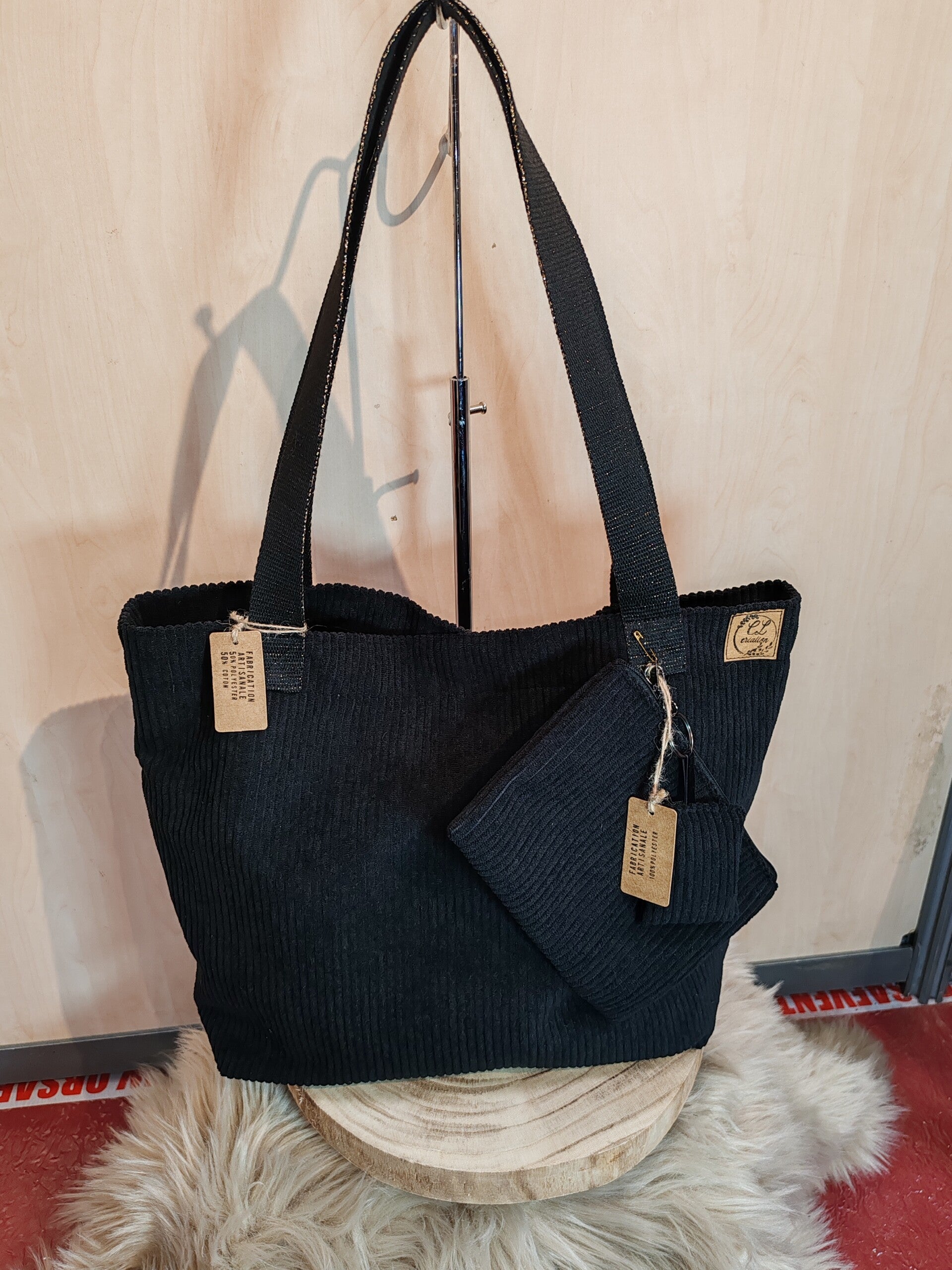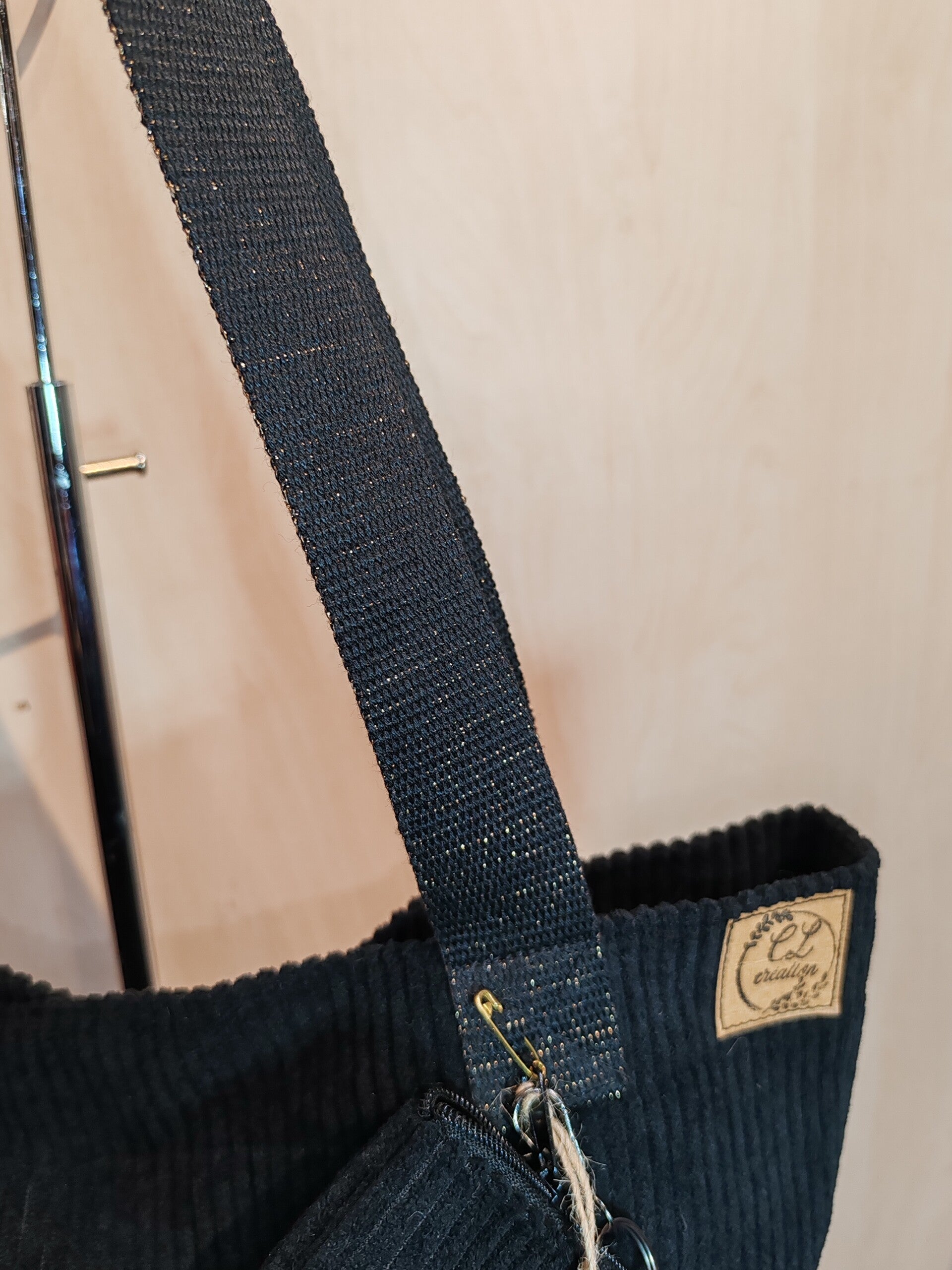 Joli sac à main en velours de couleur noir, anses en coton légèrement Scintillantes .