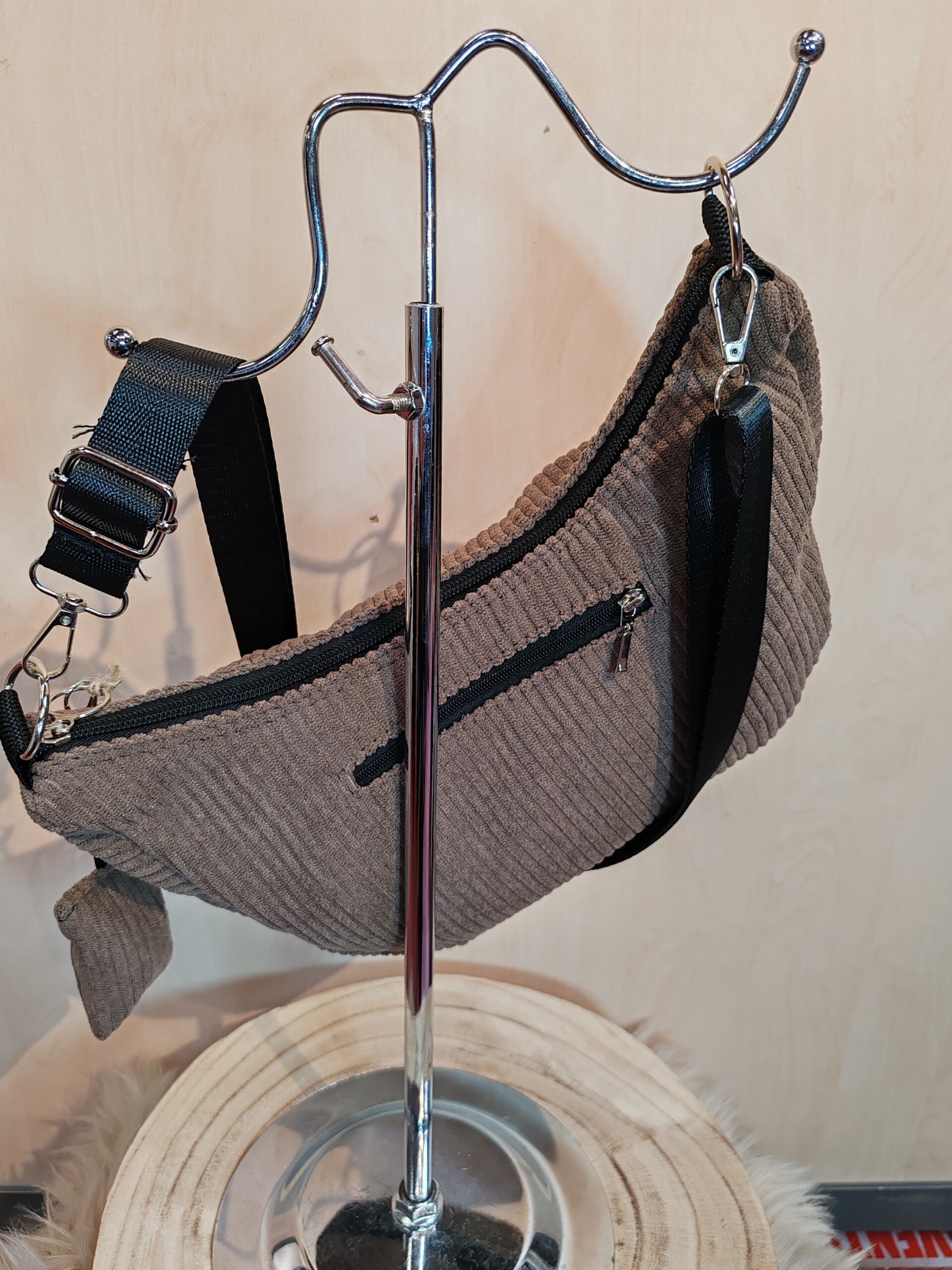 Sac demi-lune en velours marron