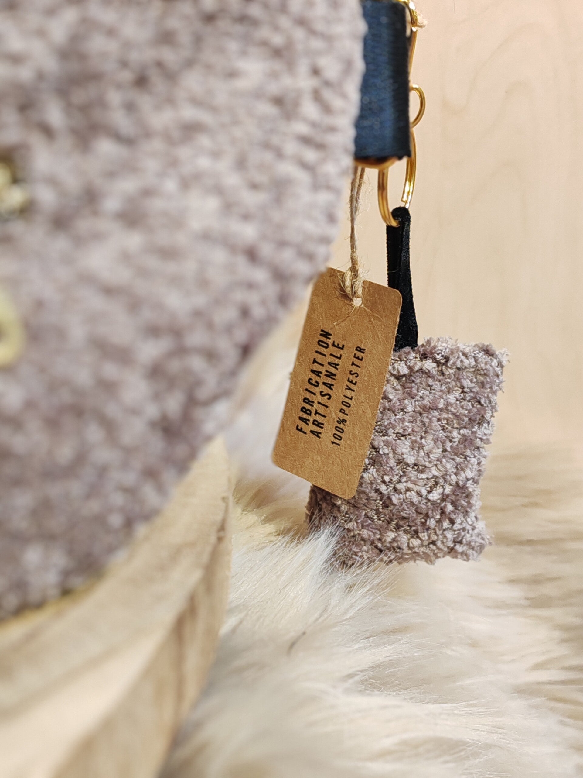Sacoche banane en moumoute de couleur taupe, doublée avec une poche intérieure plaquée et une seconde devant zippée, pratique pour le portable, les papiers, les clés etc...