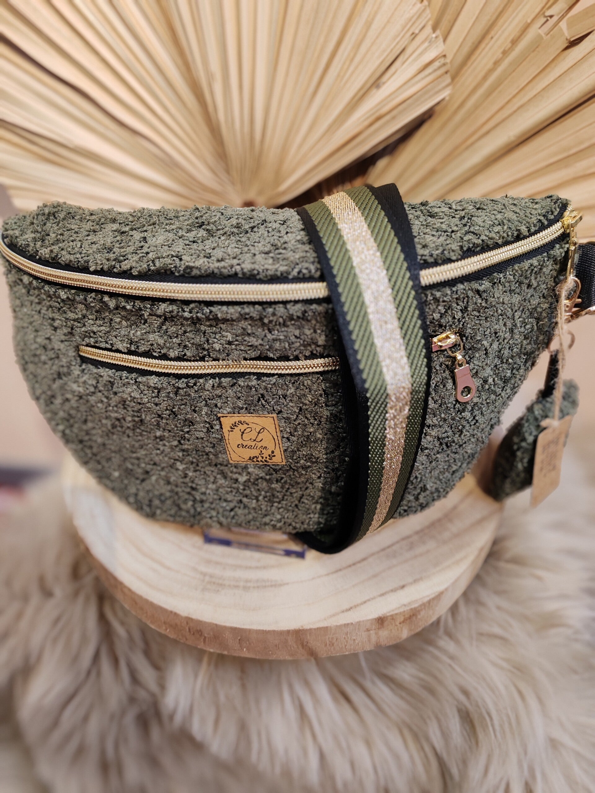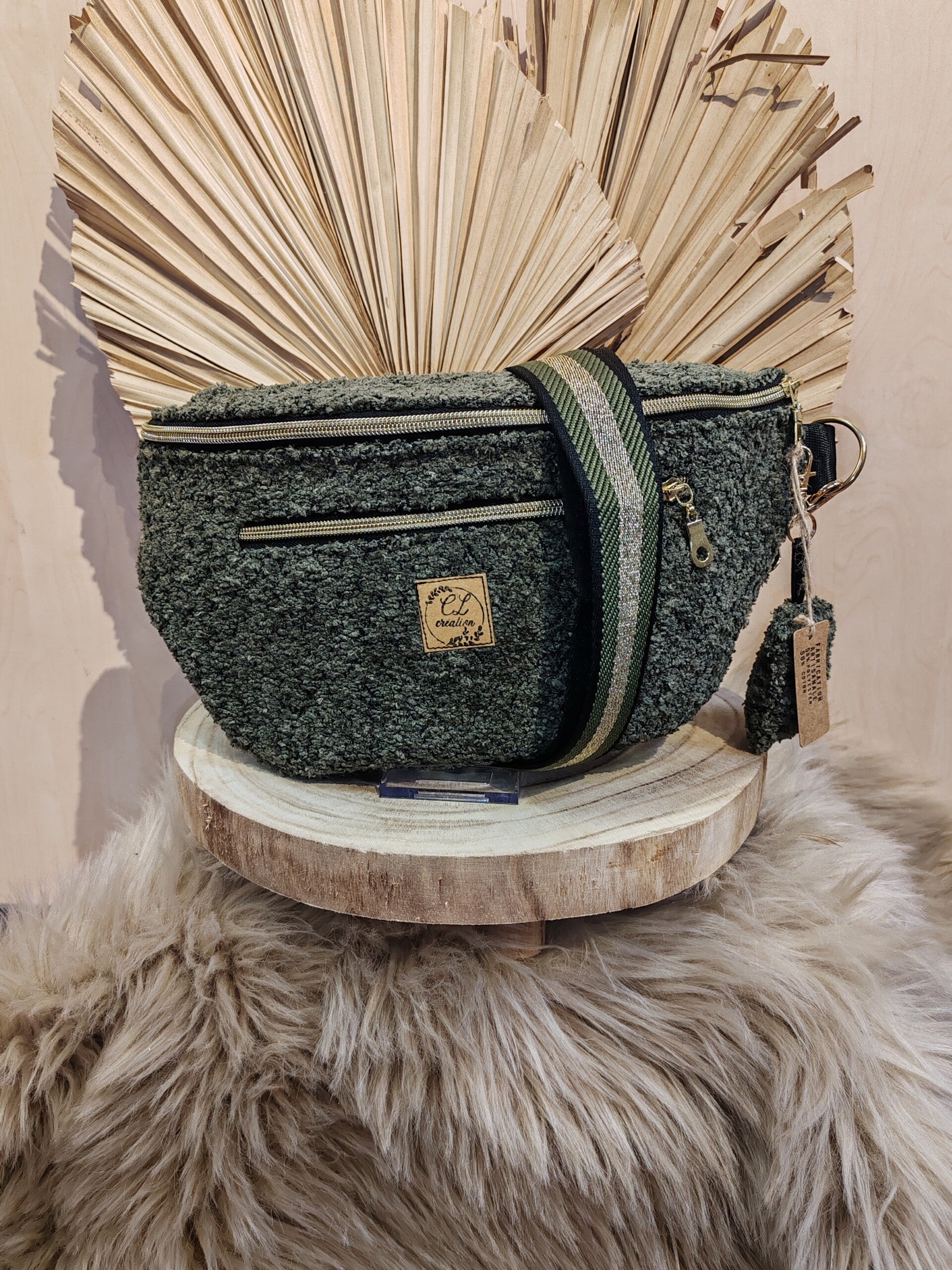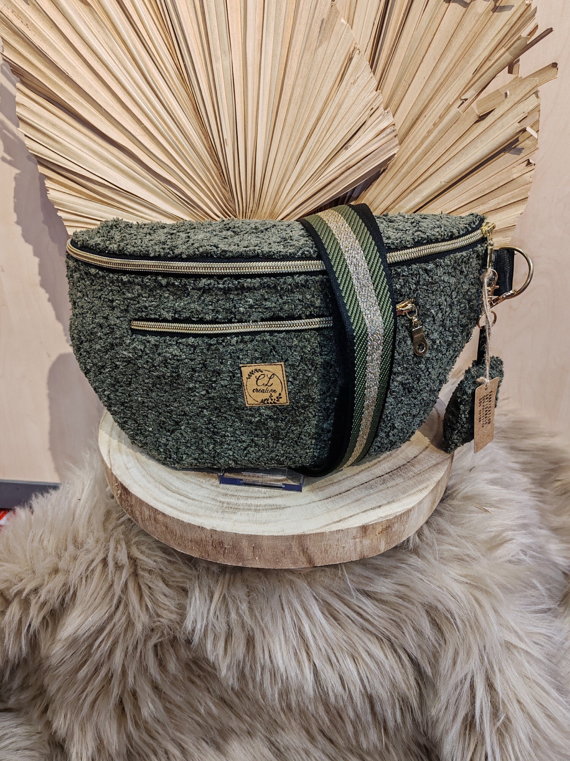 Sacoche banane en moumoute kaki