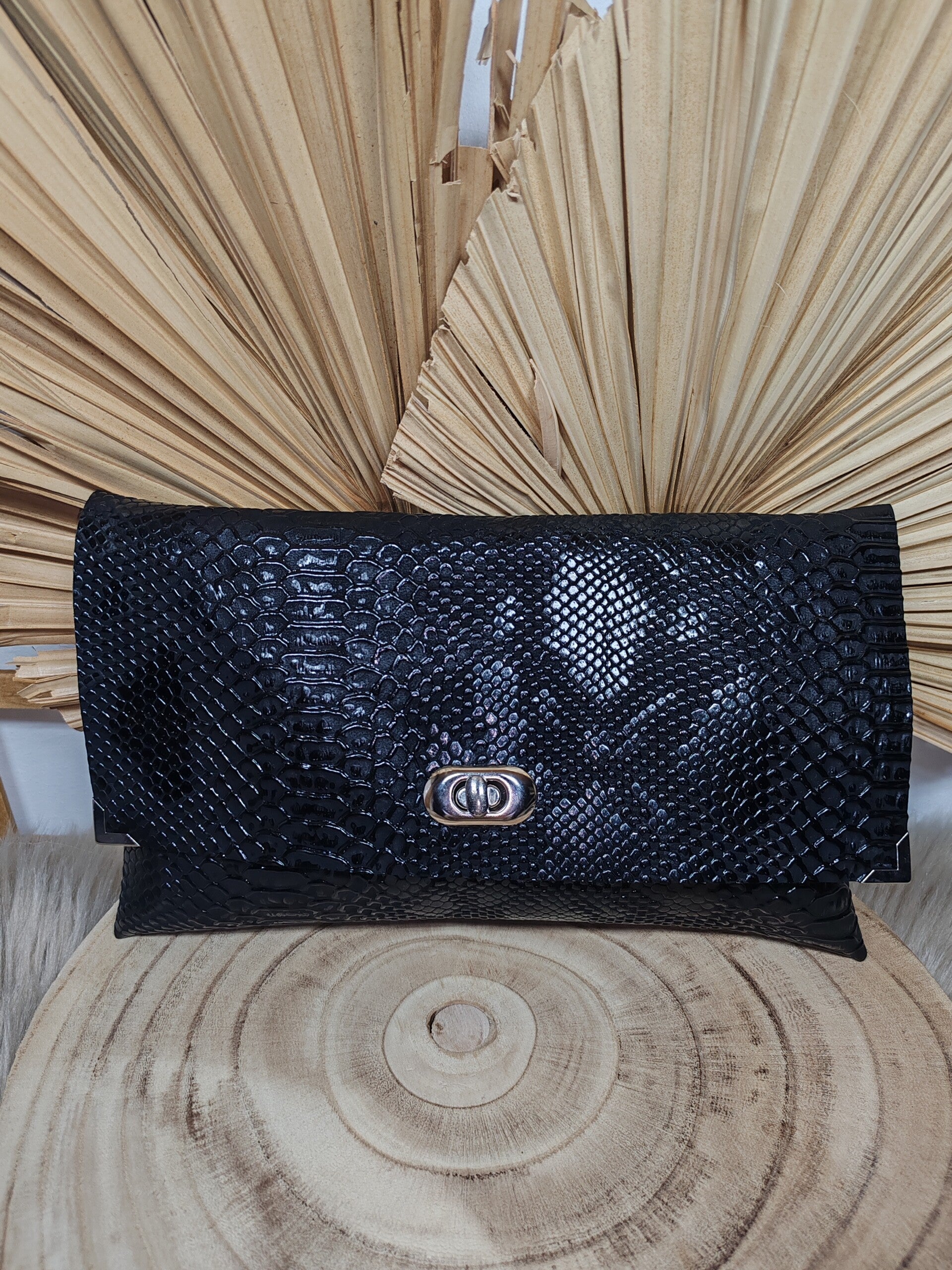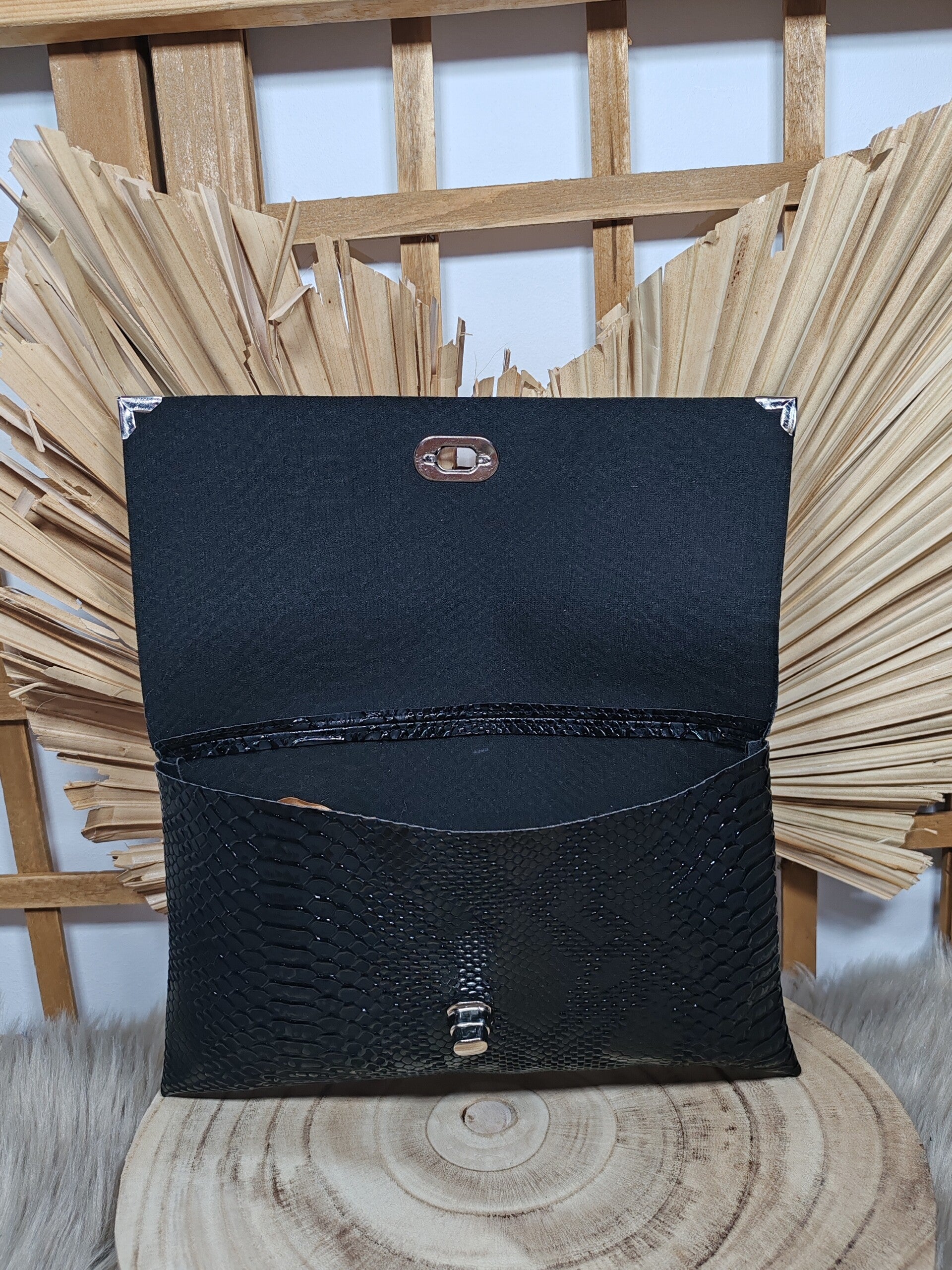 En simili cuir imitation peau de reptile noir.