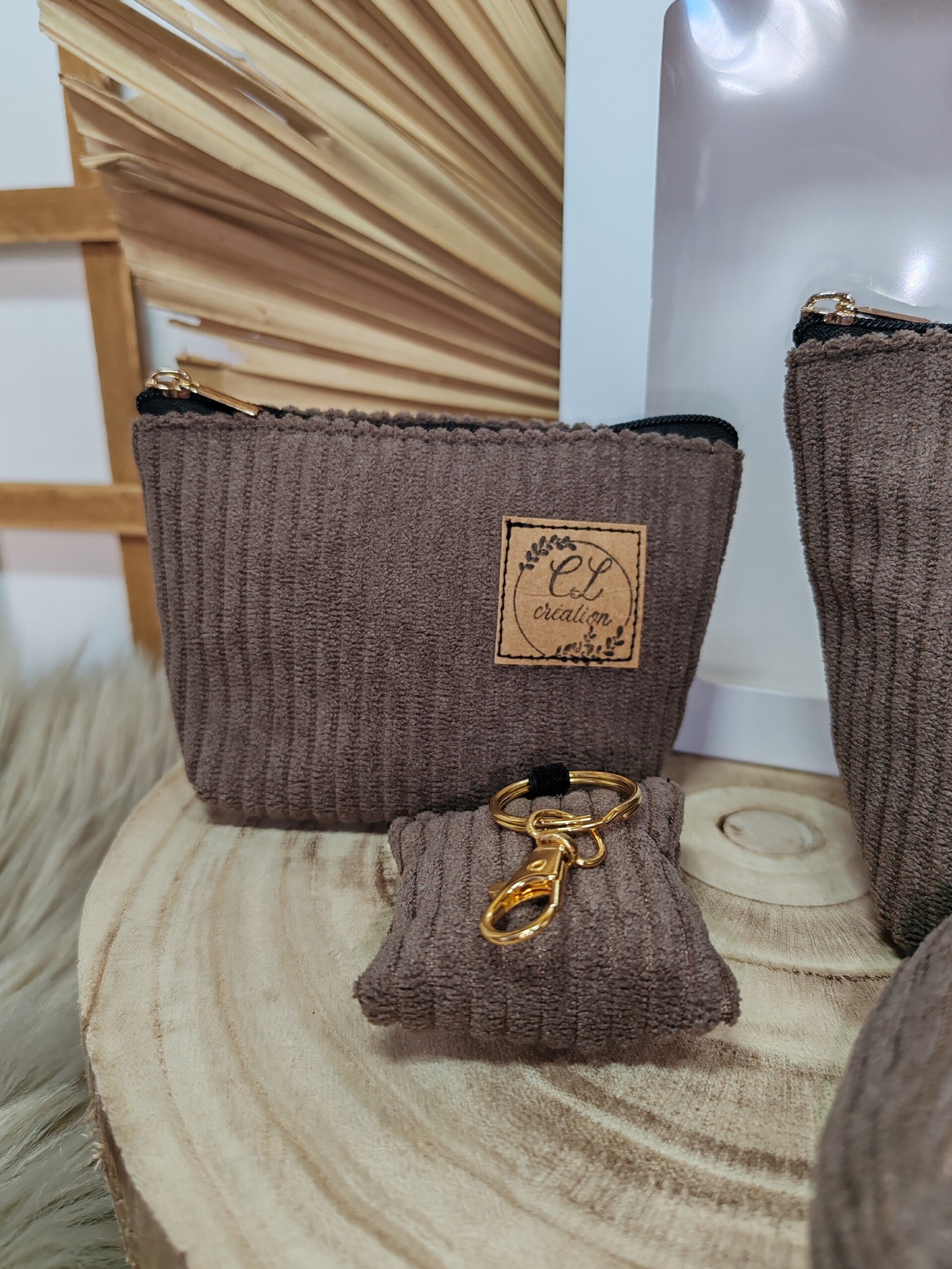 Le tout en velours côtelé marron qui passe en machine à 30°.
